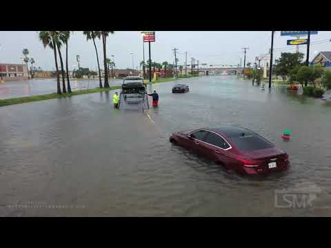 7-26-2020 Weslaco, Tx Flash flooding drowns, businesses and cars from Tropical Storm Hanna, drone
